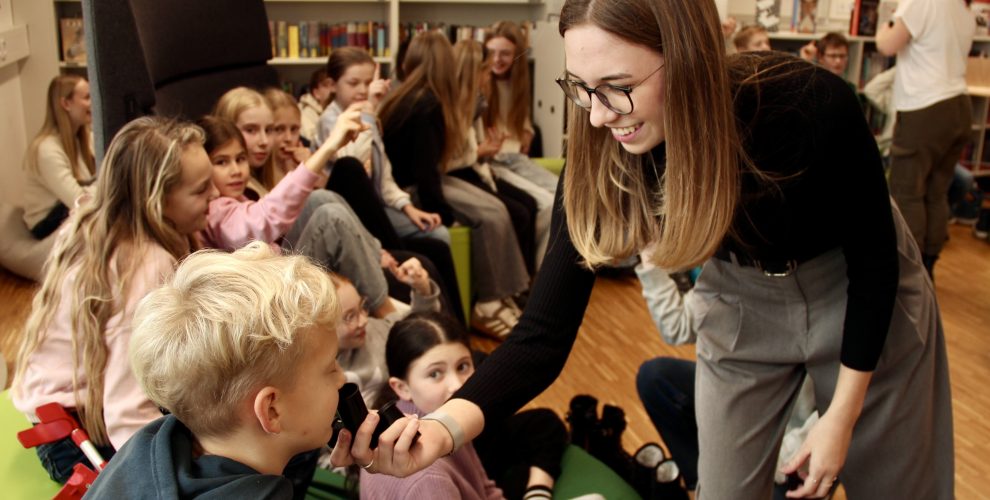 Die Jungen Bibliothekare lasen aus dem Buch der bereits mehrfach ausgezeichneten Kinder- und Jugendbuchautorin Maryam Master, „Wort für Wort“. Die Schulbibliothek des Gymnasiums Untergriesbach erwies sich einmal mehr als idealer Veranstaltungsort für das Leseevent der Jungen Bibliothekare, das seit vielen Jahren für die 5. Klassen veranstaltet wird. Die Zuhörerinnen und Zuhörer freuten sich über eine Lesung, die Gelegenheit zum Mitmachen bot. Die Aktivitäten, die allesamt auf die ausgewählten Vorlesepassagen abgestimmt waren, machten die dargebotene Geschichte mit allen Sinnen erfahrbar. So schlüpften die Schülerinnen und Schüler in die Rolle eines professionellen Geruchstesters, erhielten Einblicke in die Geografie u.v.m.